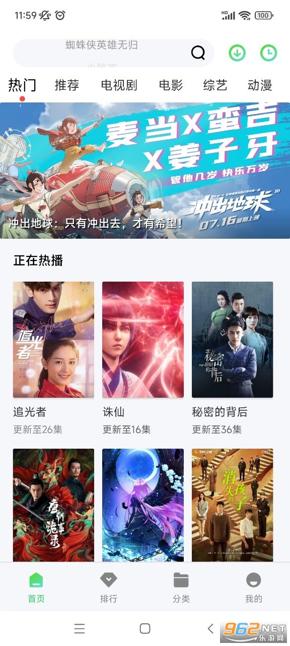 2、汇聚全网络影视剧,在热门和推荐频道可以发现最新的影视内容。