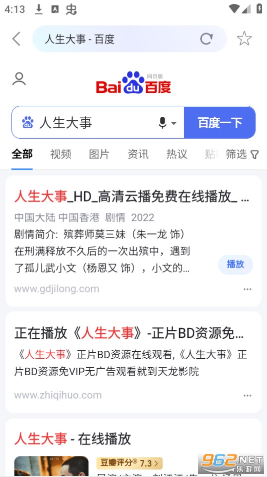 2.打开神游浏览器app,搜索你想看的影视剧,比如搜索人生大事