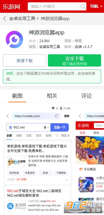 1.在本页面内下载神游浏览器app,点击普通下载即可