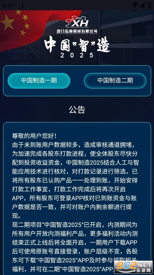 各产品资金专户开通将于1月17日晚上22:00停止办理,各项交易功能、福利活动与产品认购也将同时关闭并为已开通资金专户股东拨付账户资金!停止办理后将不再为任何股东开通资金专户,已开通资金专户的股东账户资金将一次性拨付到账,因逾时未开通资金专户的股东账户资金预计在公司上市后3-5月后以小额转账陆续发放。现认购产品可开通资金专户同时获得两项机械产品赠送,并享受收益x8.0倍福利,各产品股权交易已全面开启,凡开通产品资金专户的股东交易股权所得股资均可在公司上市当天拨付到账。望大家相互转告通知,及时开通账户资金专户,提取账户产品投资回报!中国制造2025已成功带领所有用户兑换梦想红利,跻身中产阶级,实现梦想腾飞!