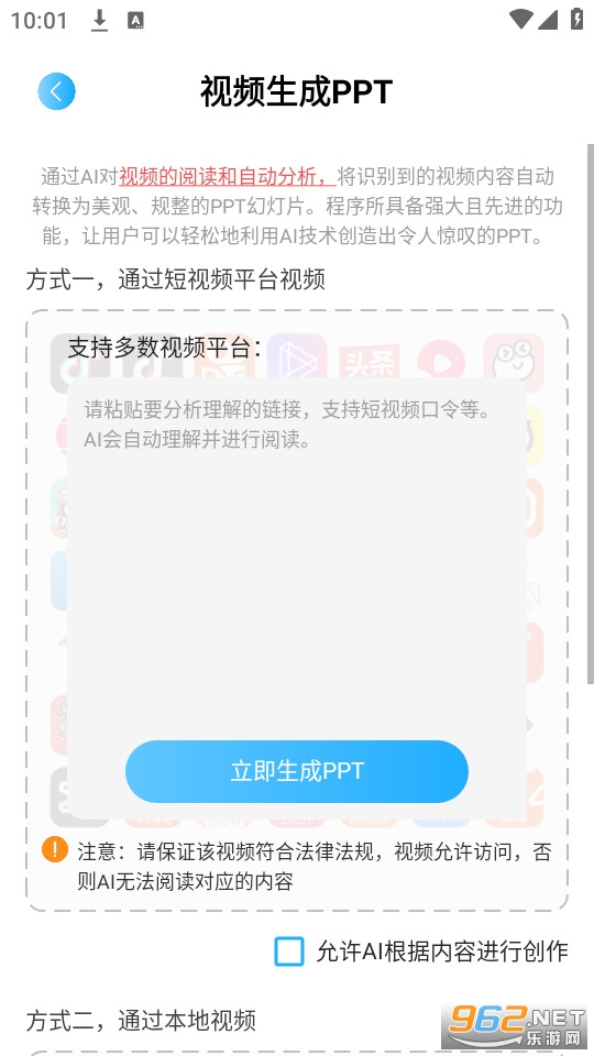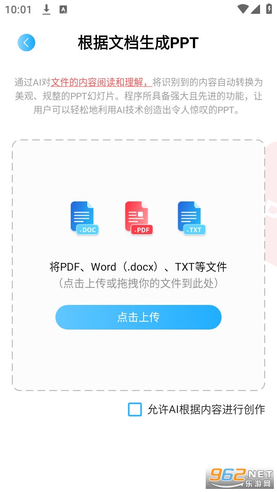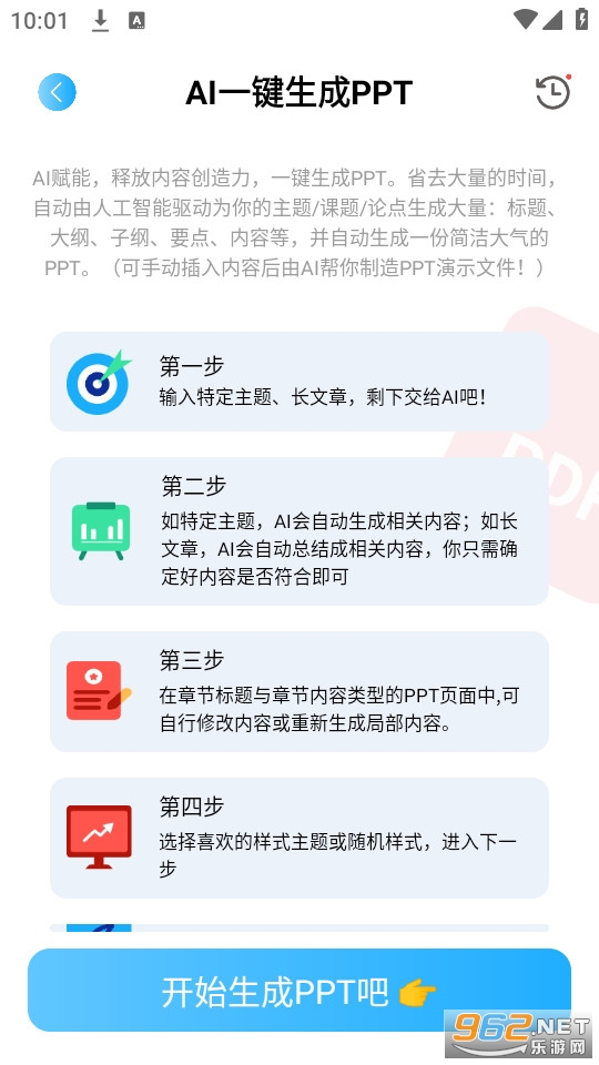 AIPPT自动生成工具是一款功能强大的实用工具软件,为用户提供多种样式的PPT生成器工具,受到广泛好评。无论您是需要将视频快速转化为PPT还是将文档转换为演示文稿,该应用都能轻松完成。另外,AIPPT还支持AI语音功能,让您可以轻松创建带有语音解说的PPT演示。操作简单易用,功能丰富,让您的工作效率大大提升。想要体验这款优秀的工具吗?赶快下载最新版本的AIPPT自动生成工具APP吧。