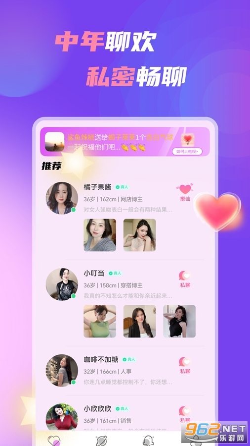 高效匹配:通过先进的算法和智能分析,“中年聊欢app”能够精确匹配用户的兴趣爱好、性格特点和生活经历,为他们推荐最合适的聊天对象。用户不再需要花费大量时间筛选和筛选,轻松找到与自己有共同话题的聊天伙伴。