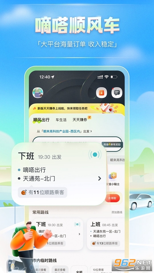 1080万车主,都在用嘀嗒顺风车!平台2.05亿用户,正在等你接单!