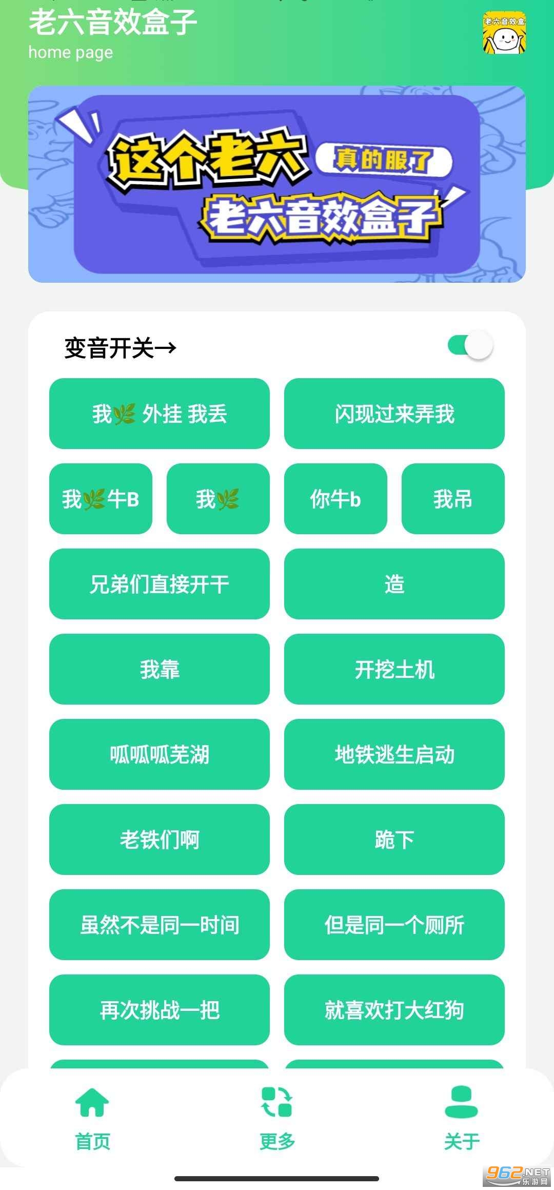 老六音效盒是一款趣味音效模拟盒子,软件提供的大量的搞笑老六语音素材,各种的网络流行的语音全部都可以在软件里面轻松的进行使用,给玩游戏的用户带来乐趣。