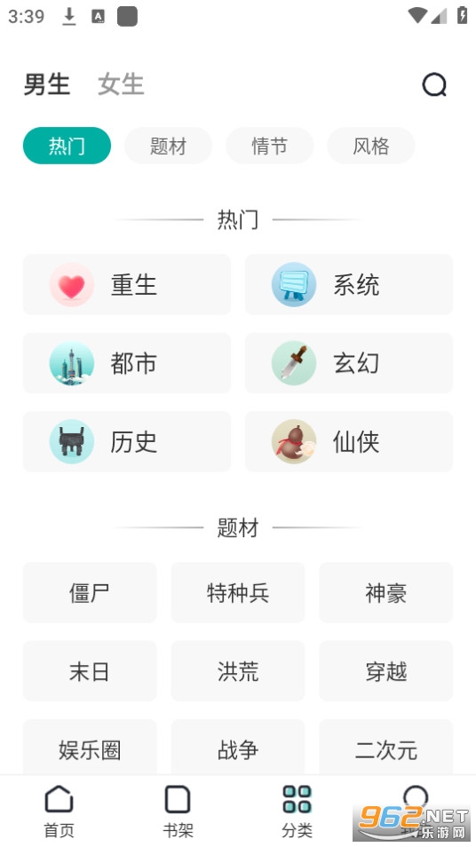 1、首页和分类栏简洁,让你在舒适的环境中阅读小说