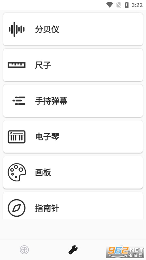包含各类常用小软件:包含了各类常用的小软件,如水平仪、尺子、分贝仪、手持弹幕、电子琴、画板等