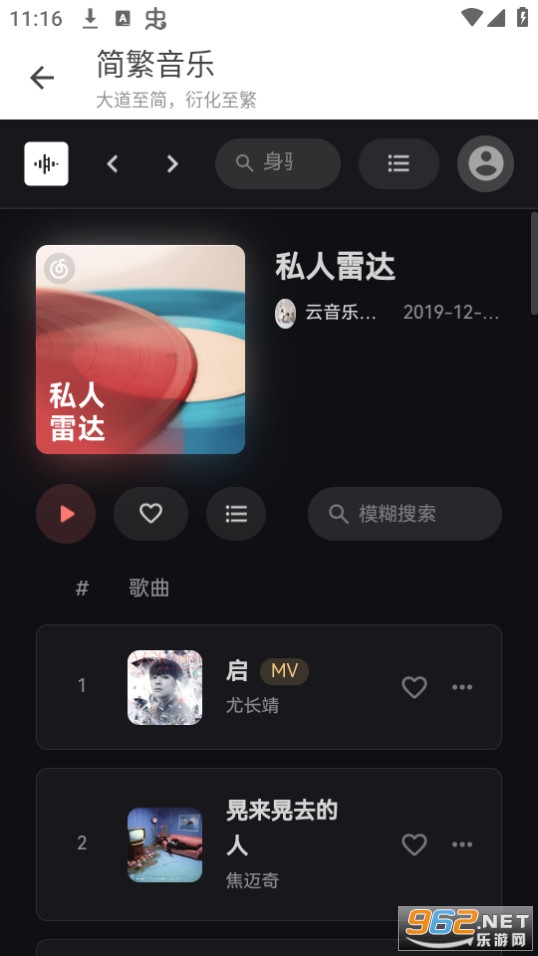1、简繁音乐是网易云的第三方播放器,可以免费听会员歌曲