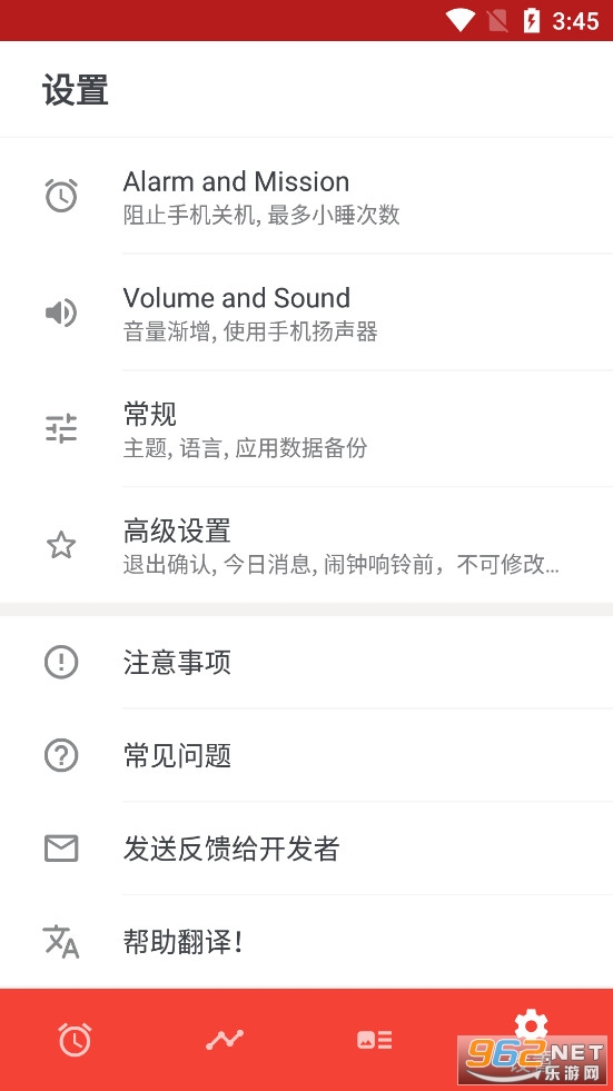 3.超越系统功能:强大的响铃时间设定、铃声音量、延迟响铃时间设定、晃动手机延时响铃功能、震动闹钟等;