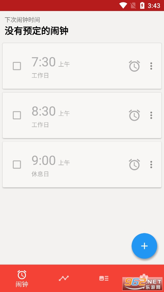 简洁界面:阿喇迷闹钟采用极简设计风格,界面清晰明了,无任何冗余元素。用户可以一目了然地查看所有闹钟设置,轻松管理自己的时间。
