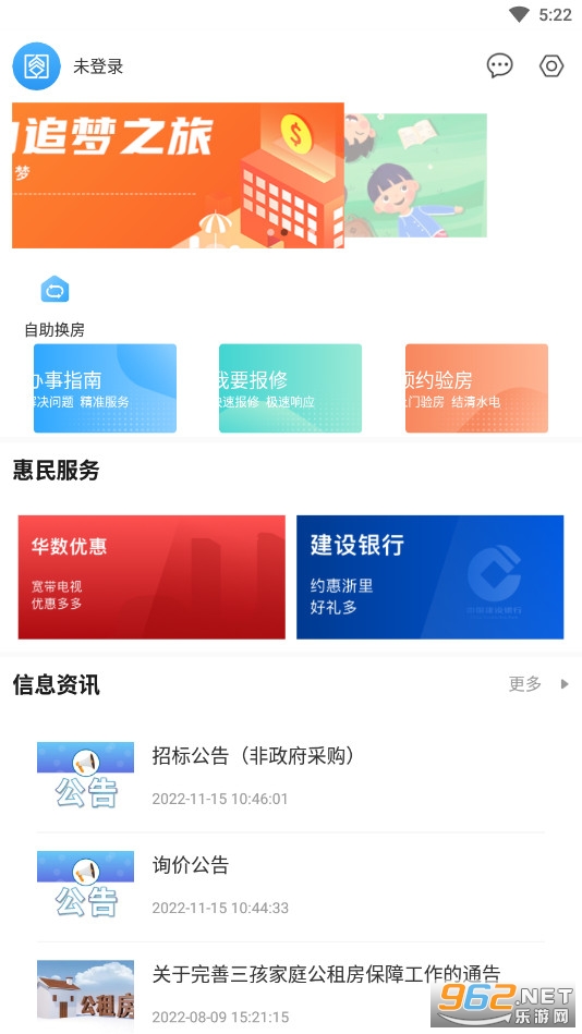 《杭州市公租房》是一款以杭州市公租房为核心打造的手机软件,能够通过软件查看杭州市公租房的最新申请条件以及各种的办事流程介绍。直接注册就可以在线进行申请换房,还能够轻松快速保修预约上门验房等。有需求的话就快来下载吧!