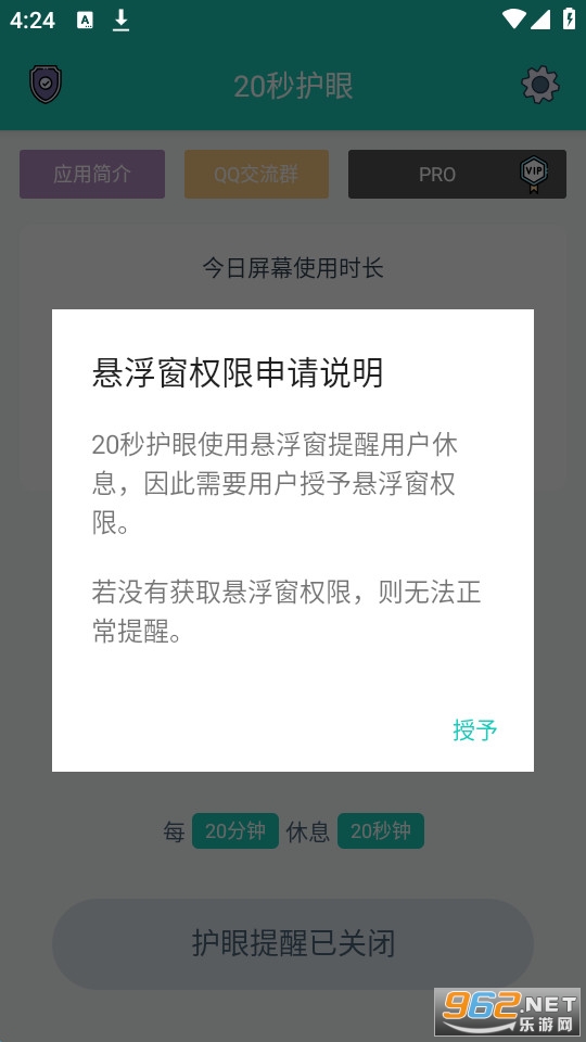 《20秒护眼app》是一款非常好用的手机软件,通过软件来对眼睛进行爱护,设置好定时休息的时间就可以了,到了时间之后手机的各种功能会停止,强制你进入休息的状态,保护好你的眼睛,让你真正做到劳逸结合。有需求的话就快来下载吧!
