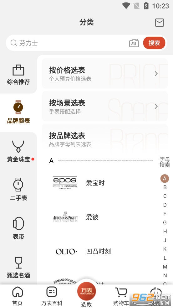 软件里面的名表珠宝有着清晰的分类,用户可根据分类进行查找。