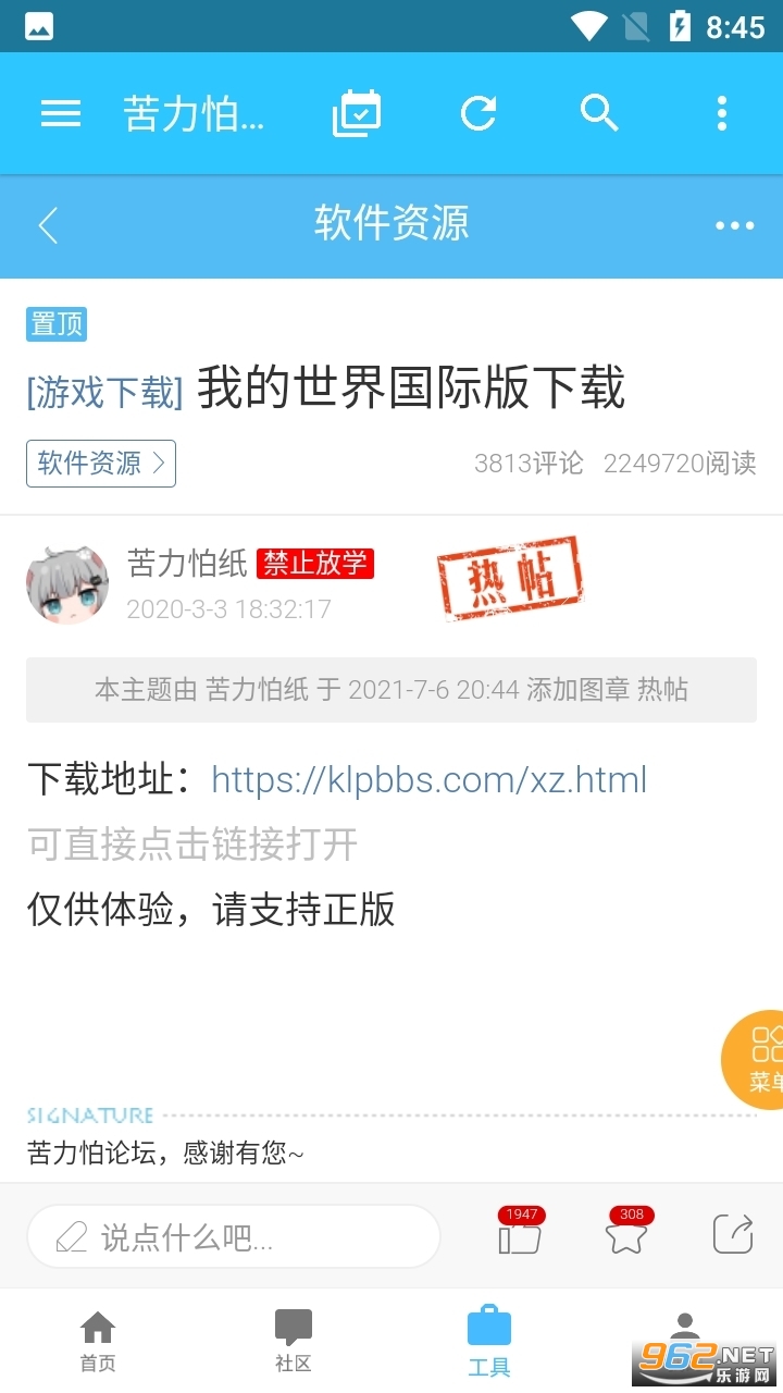 《苦力怕论坛》是一个非常好用的我的世界论坛软件,在这里你可以找到各种关于我的世界的资源,软件的操作简单容易上手,在这里你可以找到各种不同版本的我的世界资源,丰富的模组资源,还可以找到一起游玩的伙伴,快来试试吧!