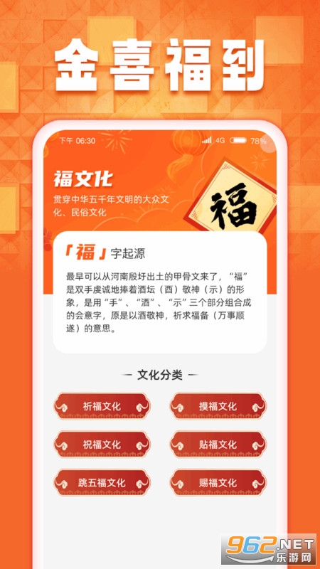 金喜福到APP是一款集福文化查询、健康管理为一体的手机助手,许多福文化内容这里都有,是无数人都需要了解的传统习俗介绍,便于我们掌握更多。而且健康管理也很方便的,直接根据自己的基础信息进行填写,就能得出代谢率等数据,还能实时关注体重变化情况,看看每一个阶段自己的代谢率是否提升了。