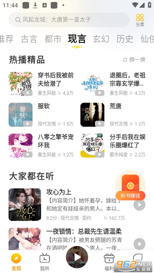 海量小说,全场畅听!都市爽文、悬疑惊悚、言情穿越、玄幻修仙、武侠江湖......超全分类,你想听的全都有.