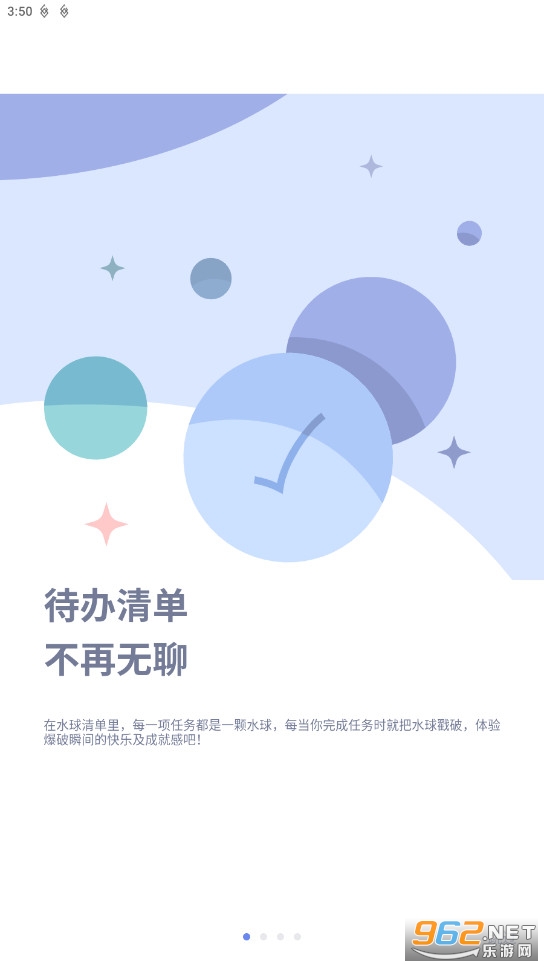 在“水球”的世界里,你的每个待办任务都会成为一颗颗Q弹的水球,完成任务之后戳破它,在水球爆掉的瞬间享受满满的成就感,让你完成每件事都迫不及待!