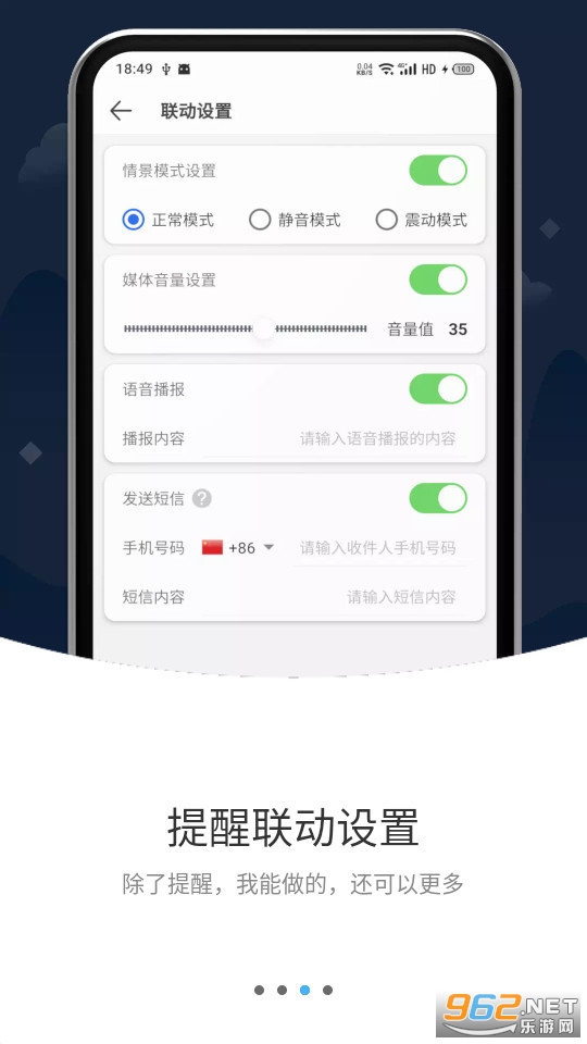 还有更多的联动操作可以设置,比如当已设置的提醒事件被触发时,可以自动设置手机的情景模式(如静音模式,震动模式),还可以自动设置手机的媒体音量,避免上班摸鱼时,因为忘记降低手机音量而尴尬~~