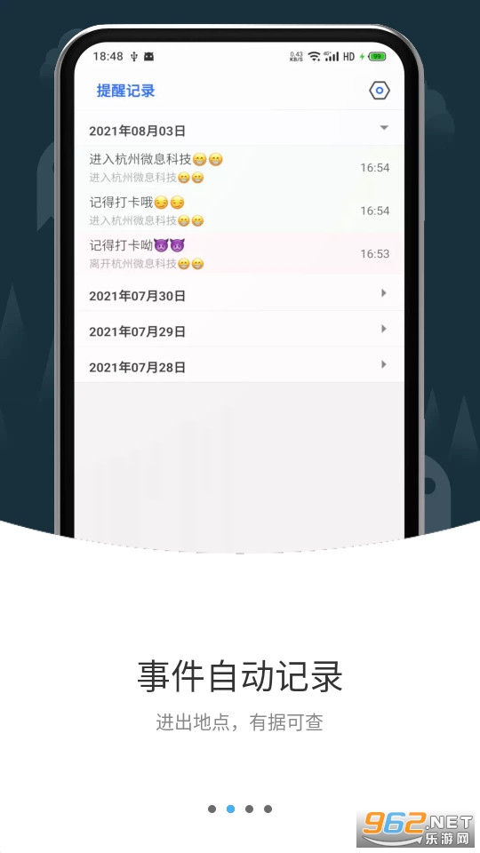所有提醒事件都会被自动记录,从此上班、下班、加班考勤将有据可查,避免付出了劳动却不被承认~~