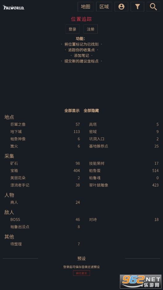 简便易用:幻兽帕鲁地图资源查询器提供直观的用户界面,使用户能够轻松地浏览、搜索和获取地图资源信息。
