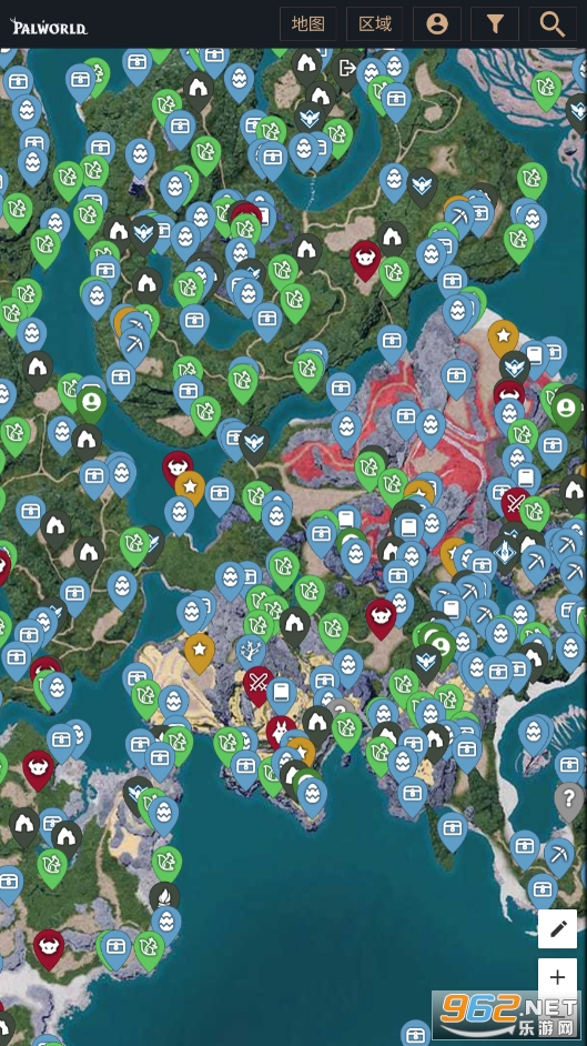 全面覆盖:软件包含了完整的幻兽帕鲁地图资源数据库,涵盖了所有游戏中的地点、道具、任务等重要信息。