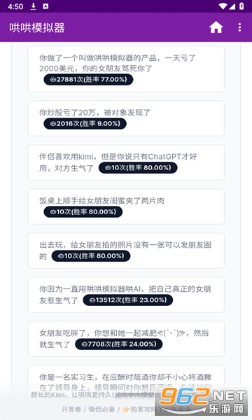 哄哄模拟器是一款非常有趣和具有挑战性的软件。它不仅考验用户的沟通技巧,还能帮助用户认识到自己在冲突解决中可能存在的问题,并提供改进的机会。软件的AI技术非常出色,能够模拟真实的情绪和反应,增加用户使用软件的真实感。通过使用这个模拟器,用户可以在虚拟环境中练习和改善自己的沟通能力,为现实生活中的各种挑战做好准备。