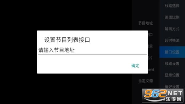 打开菜单,接口设置,节目地址,输入小编维护的节目源地址,喜欢研究的同学也可以自定义,把节目文件上传到tvmvip110.live网站上制作接口
