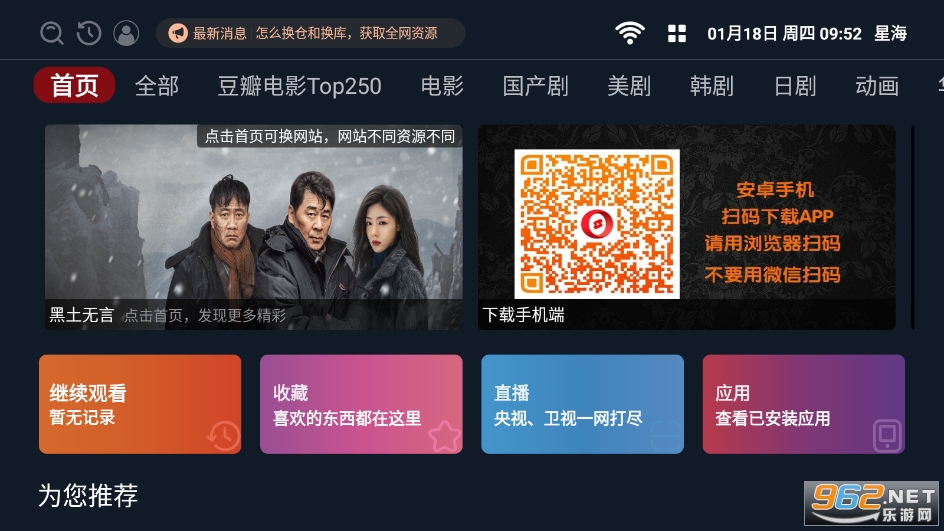 1、将焦点移动到首页,然后按遥控器的OK,就可以切换到其他网站资源啦!!!