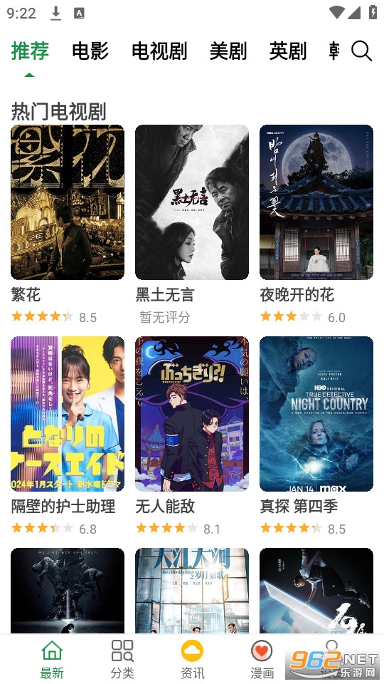 《飘花影视(飘花电影院)》是一款非常优秀的电影电视观看软件,非常简洁的界面设计,使用起来非常方便,用户可以轻松地浏览各种电影资源,并快速找到自己想看的影视剧。还提供了高清画质和流畅的播放速度,让用户可以享受到最佳的观影体验。同时,该软件还支持多种下载方式,用户可以将电影下载到本地进行观看,随时随地都能享受观影的乐趣。
