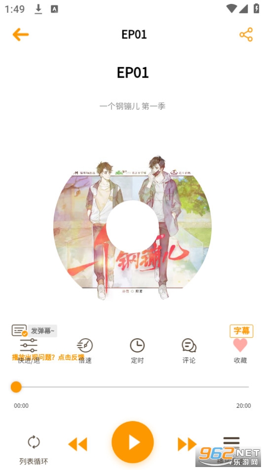 点击选中的广播剧,即可进入播放页面,用户可以选择在线收听或者下载至本地收听。
