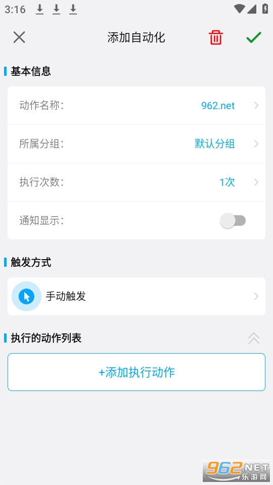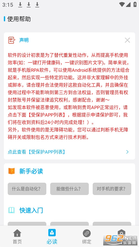 一款真正免ROOT的自动化执行工具,旨在减少用户对手机的重复操作或点击,实现一键直达的功能。举个例子:用户将打开朋友圈的几个动作组合成“一键访问朋友圈”的自动化,那么用户以后每天只需要手动点击这个自动化并可以快速打开朋友圈,而无需点击重复的的动作。另外,你也可以借助这款工具实现更多有趣的功能:APP自动化测试,辅助老人或小孩快速使用手机功能,定时执行用户设定的功能 ……更多有趣功能等你发现!