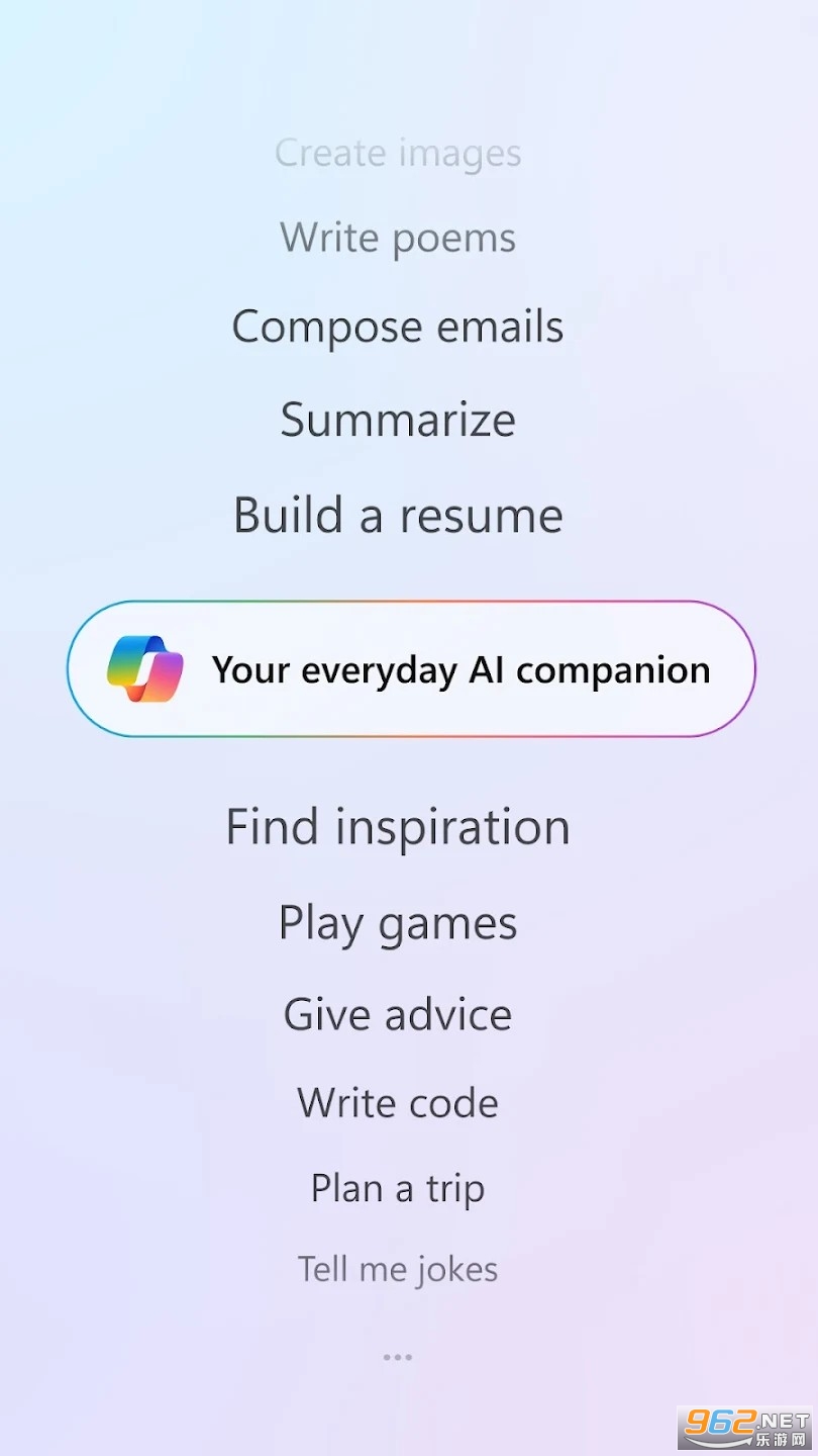 《copilot手机版》是一款基于人工智能技术的辅助工具。它不仅拥有智能化的算法,还能根据用户的需求提供个性化的服务。无论是日程管理、信息搜索,还是生活小贴士,Copilot都能轻松应对,成为用户生活中的得力助手。支持多种语言,无论用户来自哪个国家或使用哪种语言,都能找到适合自己的交流方式。内置的高效搜索引擎能够快速准确地提供用户所需的信息。能够根据用户的习惯和偏好,自动规划和提醒日常任务。