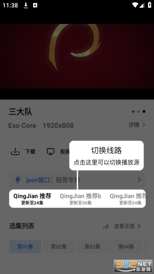 3、轻简视频支持多种源可以选择,随意切换,免费下载和投屏到大屏。