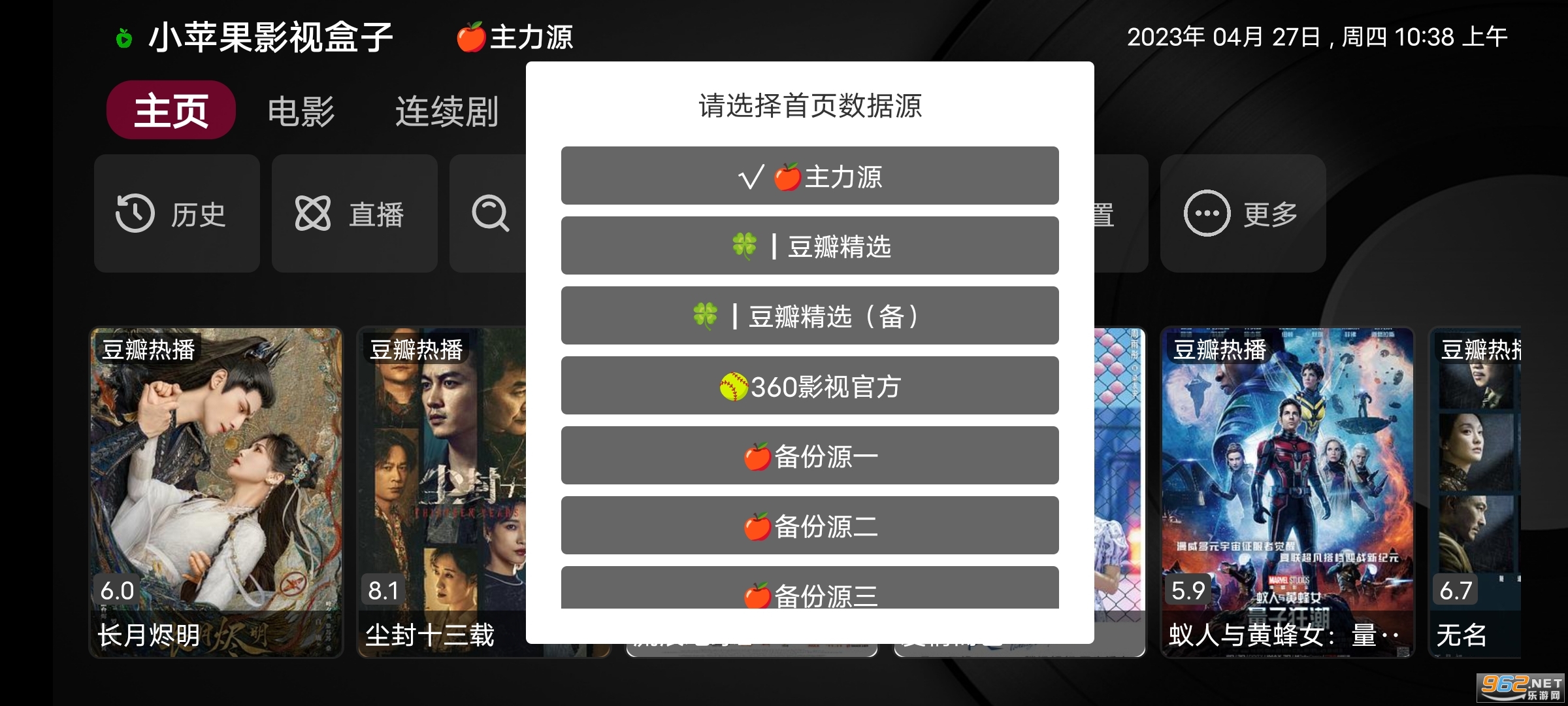 5、播放源都是来自小苹果自己的,画质也是不用说,可以在首页更多里面直接切换首页数据源