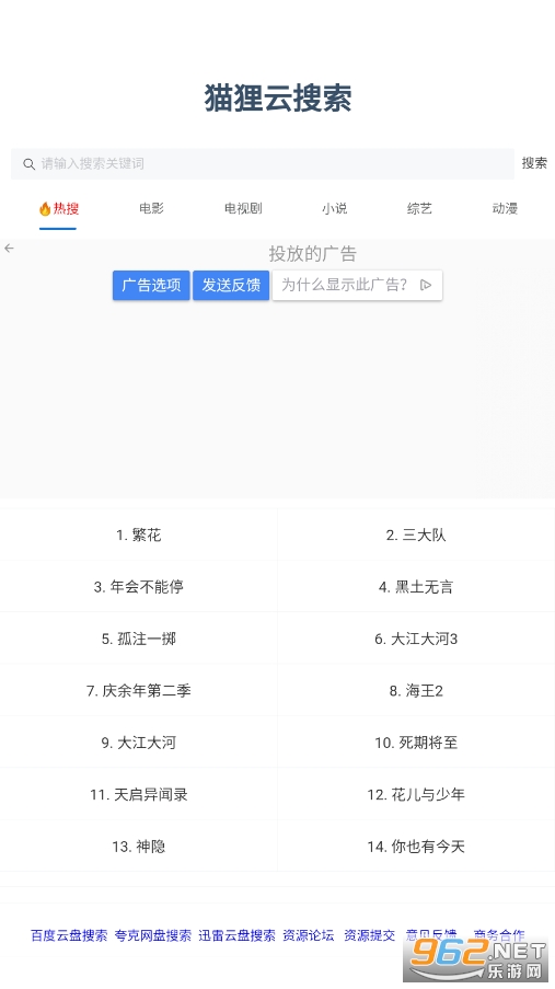 2、狸猫云搜索神器App特别适合那些对云盘资源有大量需求的用户。用户可以上传文件、文件夹,支持批量上传和断点续存。