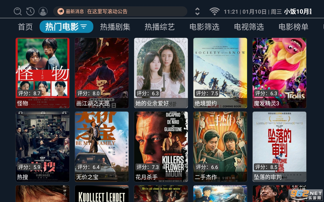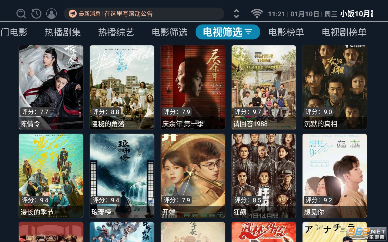 小饭10月影视TV版是一款专为智能电视设计的电视盒子软件,它集成了海量的影视资源,包括电影、电视剧、综艺、动漫等各类内容,满足用户的不同需求。