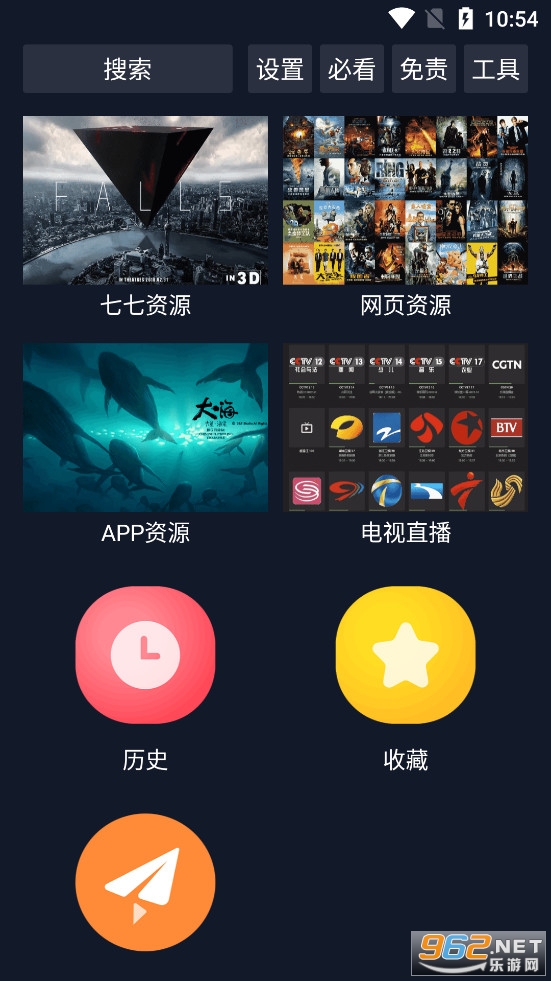 主要就是七七资源、网页资源、app资源、电视直播、历史记录、收藏和推送。