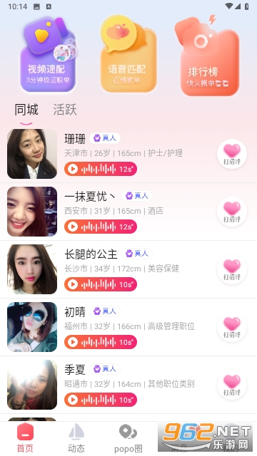 3、支持视频速配以及语音匹配、快速交友榜单推荐搜索等。
