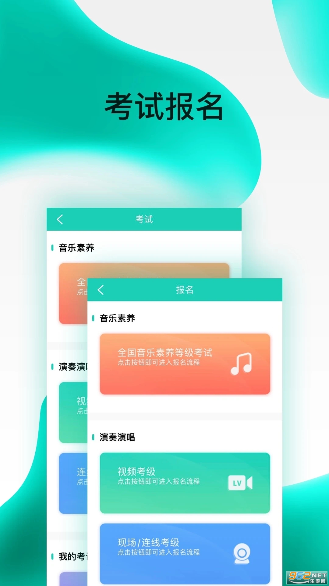 3.考试报名,演奏演唱各专业的报名和考级