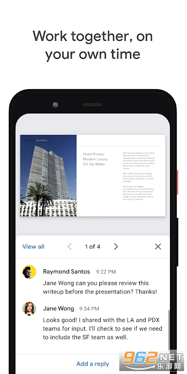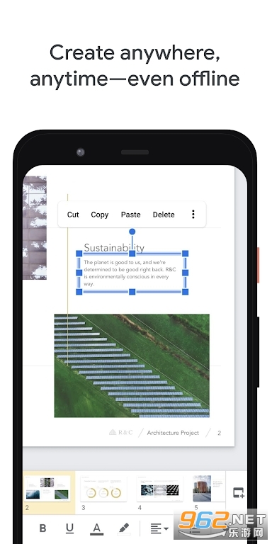 如果你需要一款功能强大的手机幻灯片编辑软件,那么谷歌slides幻灯片APP将是你的不二选择。它可以帮助你快速制作自己需要的幻灯片,并且可以随时随地使用,非常方便。同时,它还支持共享演示文稿、离线工作、添加和回复评论等功能,可以满足你的各种需求。如果你是一名团队成员,那么它还可以帮助你与业务合作伙伴、整个团队或外部联系人在线协作制作单个演示文稿,非常适合团队使用。