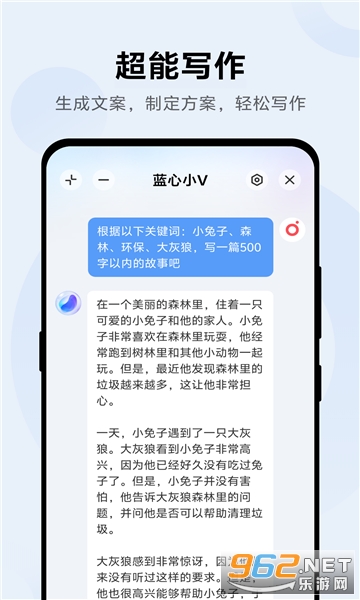 蓝心小V会基于卡片上下文快速生成相应的文案;