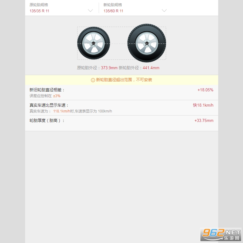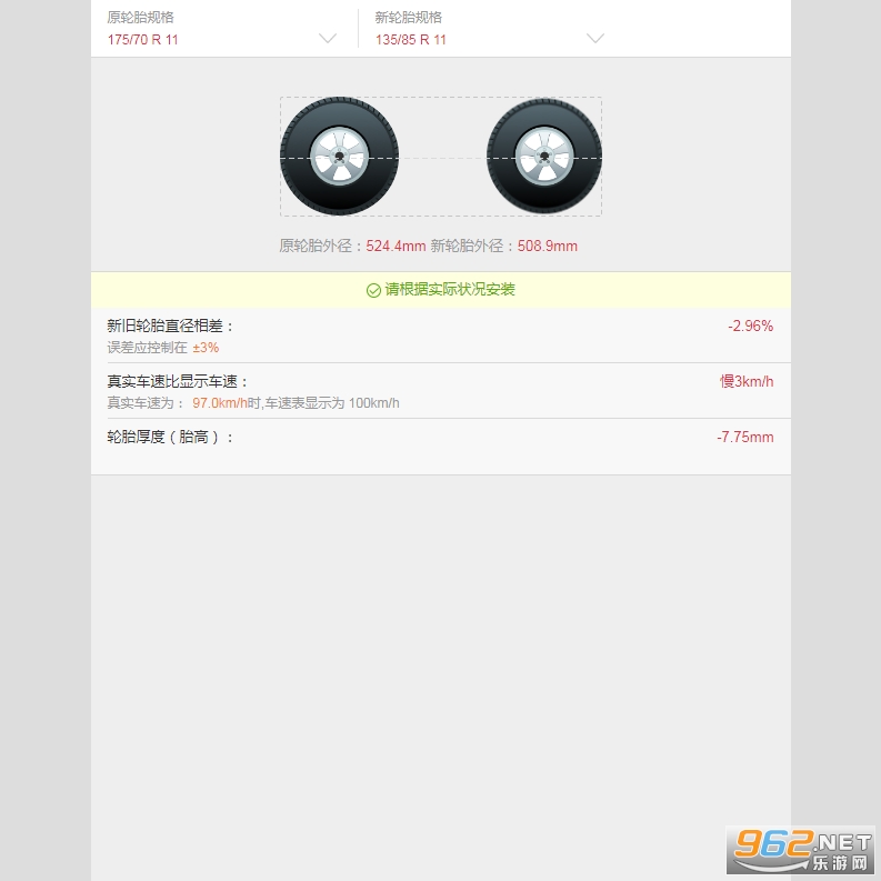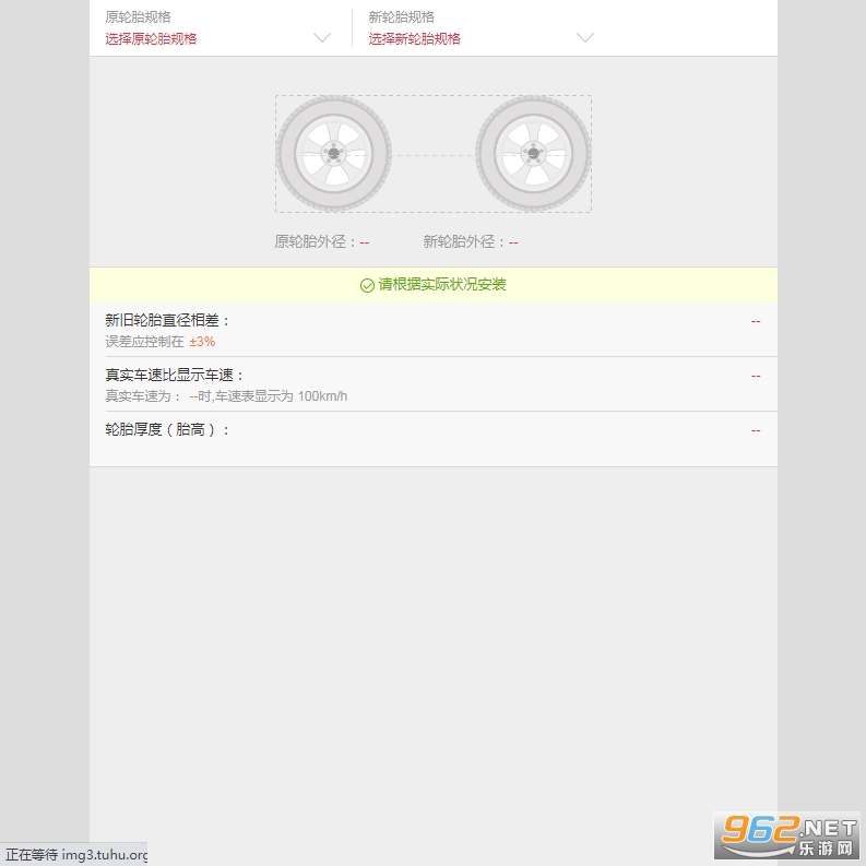 轮胎计算器是一款根据轮胎的不同系数来模拟改装后的效果,同时你只要输入轮胎的不同参数,该软件就可以计算出轮胎在公路上行驶时显示的车速与实际车速之间的差别,(运行该软件需要FLASH播放器)压缩包中已经附带了flash播放器,如果你的电脑中没有安装FLASH播放器必须先运行FLASH播放器,然后将轮胎计算器拖向FLASH播放器即可打开主界面,选择各项参数即可计算出数据。