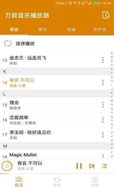 万能音乐播放器分类详细,支持歌手、专辑、目录、歌单等筛选;