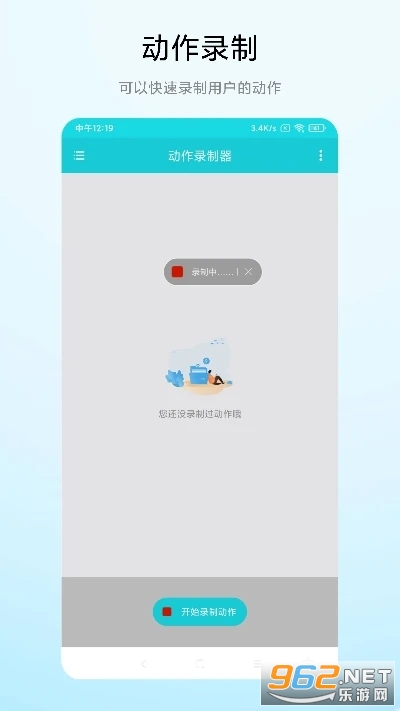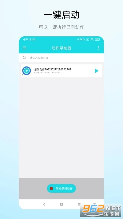 动作录制器,一款可以录制手机动作的APP,避免重复性操作,比如:点击、长按、滑动、返回等动作。用户无需编辑动作,只需要点击开始录制,软件会自动记录用户的动作并进行保存。当用户下次再进行同样动作时,只需要点击已经保存的动作,即可一键执行。