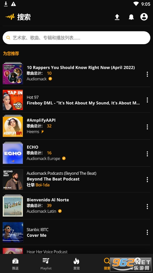 《Audiomack破解版》是一款超级好用的听歌神器,最大的优势就是可以免费听国内外任何你喜欢的歌手,不同类型的音乐,包括嘻哈,说唱,陷阱音乐,电子音乐,电子舞曲等不同的曲风,不同类型的歌曲,操作方便,音质上佳,还能直接下载,喜欢听歌的朋友千万不要错过哦!
