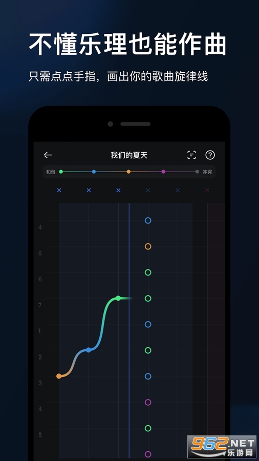 音乐是比语言更高级的情感表达方式,有更强的情绪感染力,但它被太多条条框框所限制,把很多没学过音乐、但有写歌天赋的人拒之门外;音控核心功能画音作曲,是一种结合标准作曲法的全新作曲形式,不需要任何乐理,不用懂任何乐谱,不用学任何乐器,只要你的音乐感觉好,就可以用手指点音连线的方式完成旋律创作,让每一个普通人都可以实现更高级的情感表达方式,让每一位具备创作天赋的人都可以实现自己的音乐梦想。