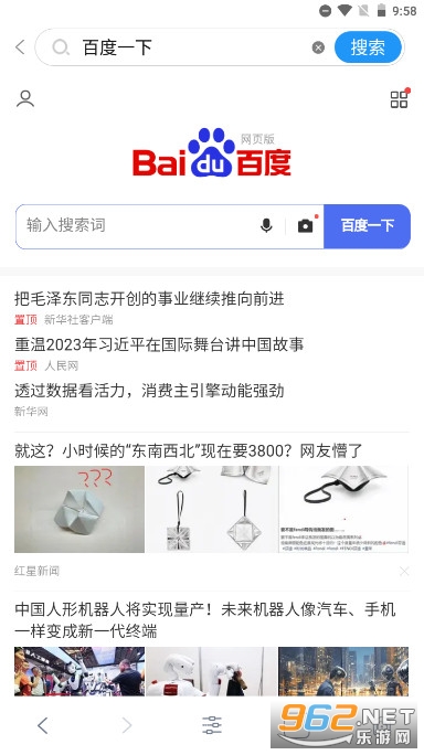 极速搜索:简约的搜索框,直达用户所需页面,缩短搜索网页的加载速度,资讯、精彩内容、视频、小说等一搜即可