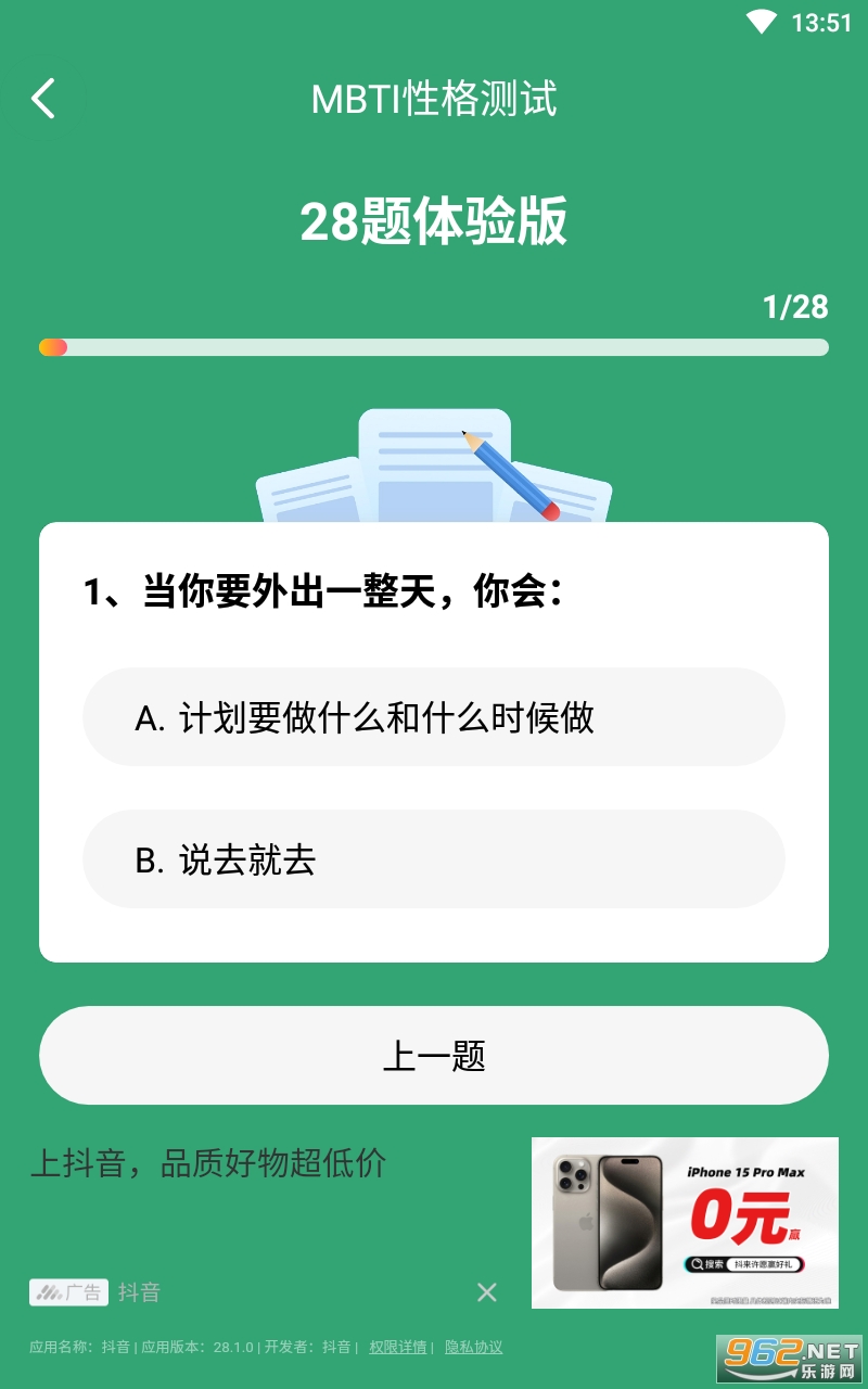 MBTI人格测试是一款专注于性格测试的应用软件,通过有针对性的选择问题,您只需要选择与您个性相匹配的选项,就可以得到准确的测试结果。采用了科学的测试方法,因此具有一定的准确特点,广泛应用于个人职业生涯规划、团队建设和企业招聘等领域。