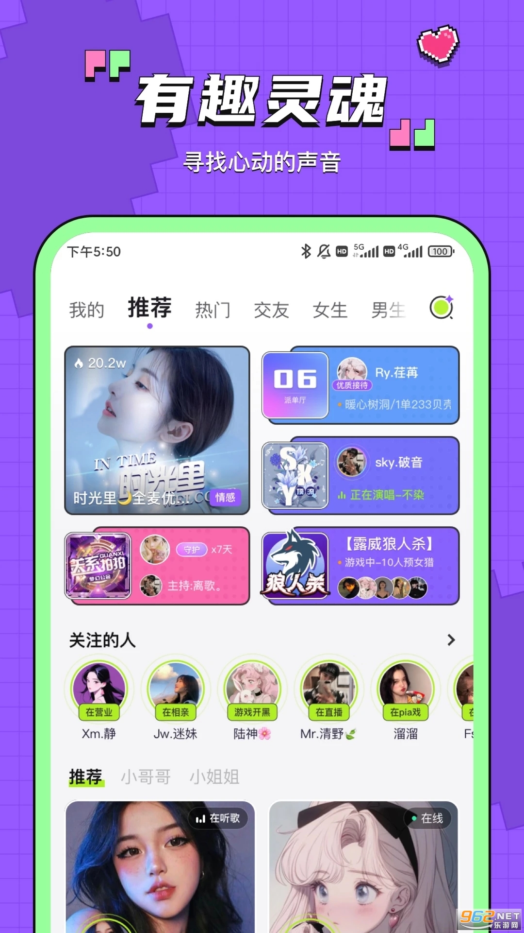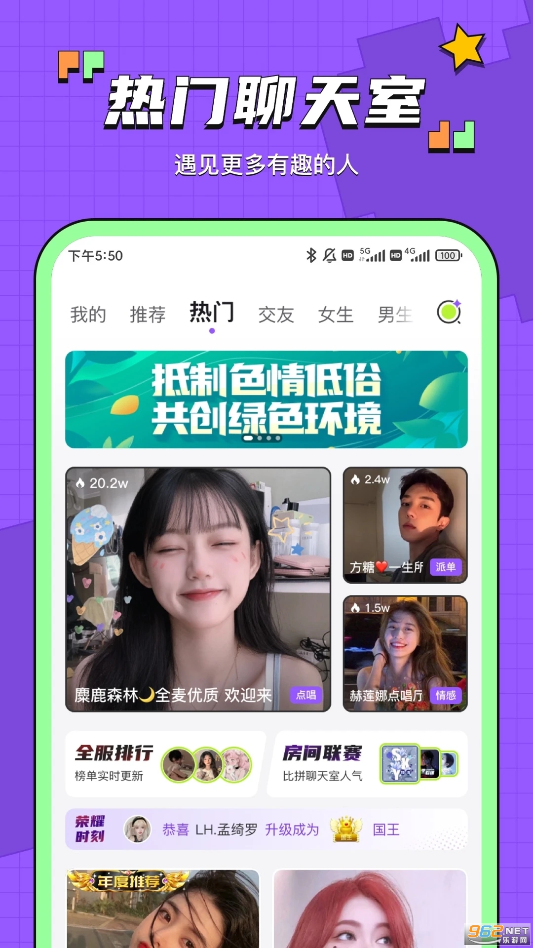 【主题房间】唱歌、游戏、交友、pia戏等多种主题房间,可实现多人在线互动,快速找到志趣相投的小伙伴!