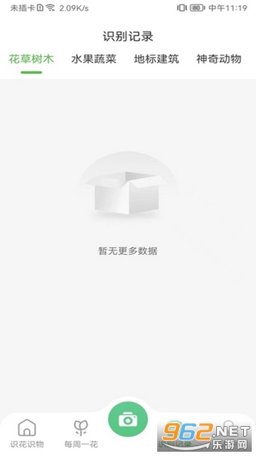 1、下载并安装花草日记植物识别软件,打开后选择“拍照识别”功能。