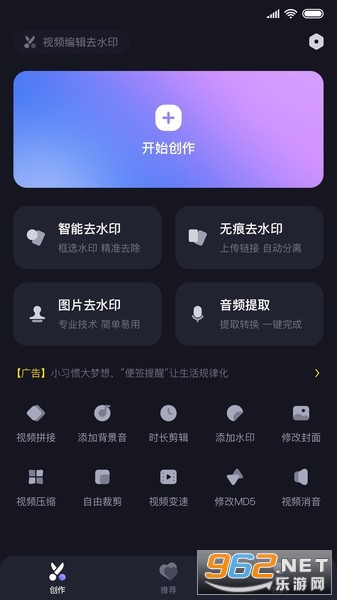 无痕去水印:上传视频链接,自动去除水印,保证视频清晰无损。